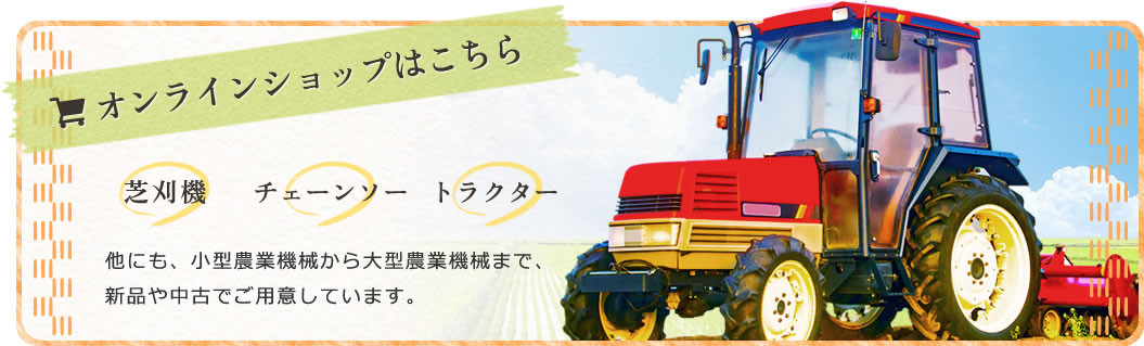刈払機などの小型農業機械から、トラクターなどの大型農業機械まで幅広く取り扱いしております。